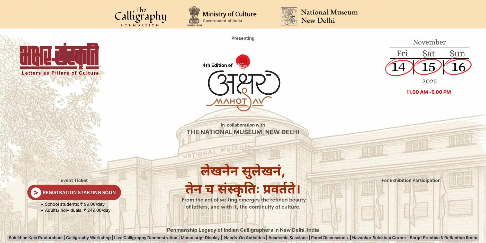 In an era where handwriting is fast receding into memory, Akshar Mahotsav 2025 reclaims writing as a living cultural practice. Organized by the Calligraphy Foundation in collaboration with national cultural institutions, the festival stands as India’s only dedicated platform celebrating scripts, calligraphy, and the pedagogy of writing. With its guiding theme “Lekhan Se Sulekhan”—from the everyday act of writing to its refinement as calligraphy—the Mahotsav underscores that the survival of calligraphy begins with the revival of handwriting itself.