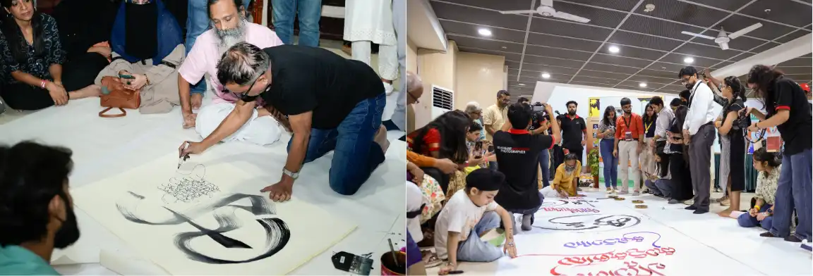This year, a full day of activities is devoted to schoolchildren, offering guided workshops, storytelling with scripts, and group calligraphy exercises. Under the care of mentors and volunteers, students will not only learn to shape letters but also explore their cultural stories through clay, colour, fabric, and collaborative murals.